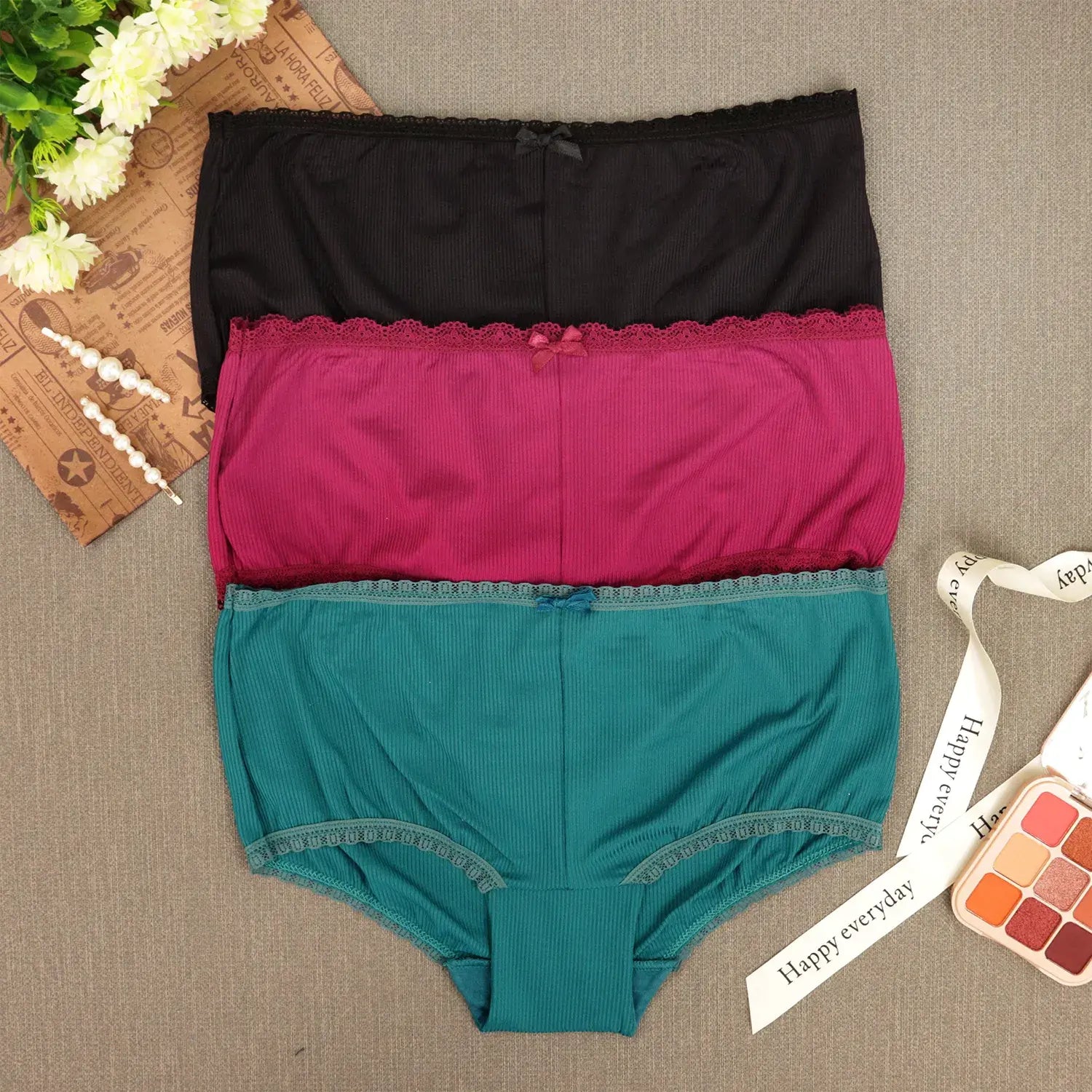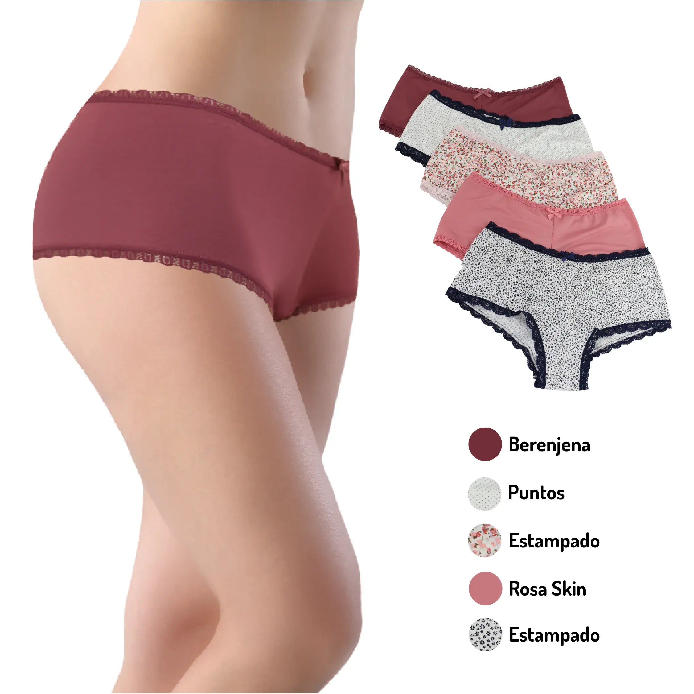 Paquete De 3 Panty Tipo Boxer De Encaje Colores Mod. 21215